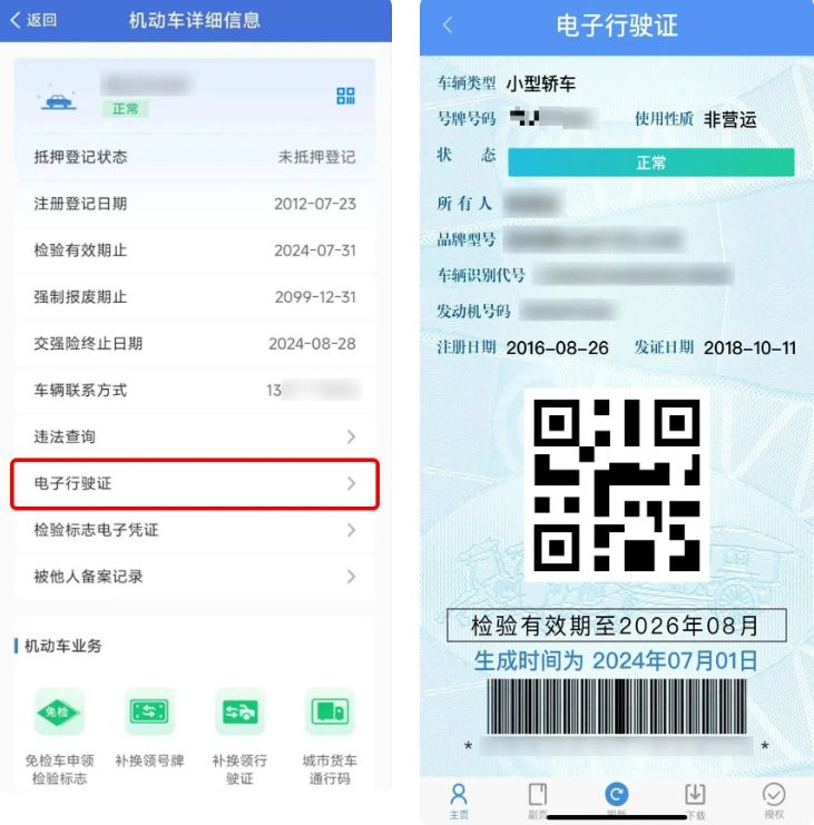 网上在线办理业务需要提交行驶证的,用户可选择下载电子行驶证图片。
