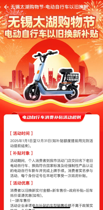 温馨提示:微信搜索公众号【无锡本地宝】,关注后在对话框回复【电动车】进入电动自行车以旧换新<补贴标准、补贴对象、如何申请、补贴发放>;网上上牌申请入口+流程图解、上牌材料、线下办理地址<带牌销售点+交警网点>等。